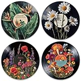- 4 Stück verschiedene Druckmuster:einschließlich 4 verschiedenen runden Schallplatten Wandkunstpostern mit Pflanzenmotiven, ideales Geschenk für Freunde und Familie zum Feiertag, Geburtstag, Weihnachten