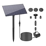 - 【Multifunktionale Solarwasserpumpe】 Dieses Solarwasserpumpen-Kit wird mit 4 verschiedenen Düsen geliefert, die leicht ausgetauscht werden können, um unterschiedliche Sprühformen zu erhalten. Es kann auch an einem Schlauch befestigt werden, um verschiedene Wasserspiele zu machen. Dies ist eine vielseitige Solarwasserpumpe, die sich perfekt für Vogelbäder, Aquarien, kleine Teiche und Gärten eignet.