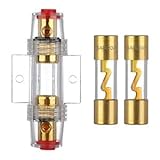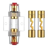 - VEXUNGA AGU Sicherungshalter Inline Vergoldet Glasrohr und 2 Stück Vergoldetes Glas 20A AGU Sicherung.