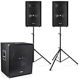 - PA Komplettset mit kraftvollen & voluminösen Sound – 2.1 Lautsprechersystem mit 18 Zoll aktivem Subwoofer und zwei 12 Zoll Topteilen. 1200 Watt Spitzenleistung für kraftvollen Sound. Ideal für Gesang, Sprache, DJs, Partys und Events.