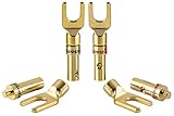 - Kabelschuh - Gabelschuhe für die elektronische Verbindung von Lautsprecherkabeln, hochwertiges Material: Aluminium Gehäuse und 24k vergoldet