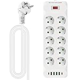 - 【Mehrfachsteckdose einzeln schaltbar】Die Gesamtleistung beträgt 4000 W, 10 Steckdosenleiste mit Schaltern, Sie können Haushaltsgeräte steuern, ohne separate Geräte ein- und ausstecken zu müssen. Außerdem bieten 4 USB-Anschlüsse eine schnelle Aufladung für Ihre elektronischen digitalen Geräte.