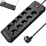 - 14-in-1-Steckdosenleiste: Unsere Steckdosenleiste mit 10 fach und 4 USB-Anschlüssen ermöglicht Ihnen das gleichzeitige Laden mehrerer Geräte und bietet ein Höchstmaß an Sicherheit, Komfort und Zuverlässigkeit.
