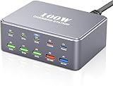 - 【USB C Ladegerät 10 in 1】. Dieser USB-C-Ladeblock bietet mit 5 USB-C-Anschlüssen und 5 USB-A-Anschlüssen 10 Optionen für die Ladeleistung. Ein solches USB-C-Multiport-Ladegerät kann alle Ihre Geräte mit hoher Geschwindigkeit verwalten. Das Coole daran ist, dass Sie einen Laptop mit den besten USB-C-Ports mit 140 W aufladen können und auch mit der PPS-Schnellladung 45 W kompatibel sind.