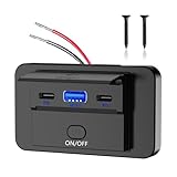 - 【 Ein / Aus Schalter】 :Dieses 12V / 24V USB Einbaubuchse ist mit Ein- / Ausschalter für Energieeinsparung und Geräteschutz ausgestattet. Hinweis: Die LED leuchtet nur, wenn sie an die Stromversorgung angeschlossen ist und der Schalter eingeschaltet ist.
