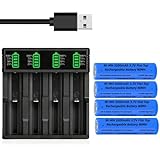 - 【Lieferumfang】: 1 Pack 4-Soll 18650 Akku Ladegerät mit 4 Pack 3,7 V Ni-MH-Akkus (Spannung: 3,7V; Material: Ni-MH; Typ: Flat Top; Kapazität: 3500mAh, Größe: 18,01 mm x 18,01 mm x 65,01 mm / 0,7inch * 0,7inch * 2,55inch (L x W x H). HINWEISE: Dies sind 3,7V Flat Top Akkus, KEINE Button Top / AA / AAA Akkus. Bitte überprüfen Sie, ob die Akkugröße für Ihr Gerät geeignet ist.