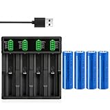 - 【Lieferinhalt】: 1 Stück 18650 Batterieladegerät + 4 Stück 3,7V Wiederaufladbarer Akkus (Spannung: 3,7V ; Werkstoff: Ni-MH ; Kapazität: 2200mAh ; Größe: 18.01mm*18.01mm*65.01mm / 0.7inch*0.7inch*2.55inch ; Typ: Flat Top). HINWEISE: Bitte überprüfen Sie, ob diese Batteriegröße für Ihr Gerät geeignet ist oder nicht.