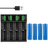 - 【Lieferinhalt】: 1 Stück 18650 Batterieladegerät + 4 Stück 3,7V Wiederaufladbarer Akkus (Spannung: 3,7V ; Werkstoff: Ni-MH ; Kapazität: 2200mAh ; Größe: 18.01mm*18.01mm*67.01mm / 0.7inch*0.7inch*2.63inch ; Typ: Button Top). HINWEISE: Bitte überprüfen Sie, ob diese Batteriegröße für Ihr Gerät geeignet ist oder nicht.