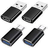- USB C Adapter, 4er-Pack: USB-C Buchse auf USB-A 3.0 Stecker Adapter 2 Stück und USB-A 3.0 Buchse auf USB-C Stecker Adapter 2 Stück. Beide Arten von USB-C-Adaptern wandeln USB-C-Anschlüsse und normale Standard-USB-Anschlüsse nach Bedarf ineinander um, und Sie werden sie als äußerst praktisch empfinden. Kompatibel mit USB-Kabeln, USB-Ladegeräten, USB-Flash-Laufwerken, USB-Kartenlesern, USB-C-Kopfhörern, Smartphones, Tablets, Laptops und anderen Geräten.