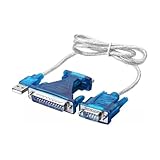 - Dieses Kabel wurde entwickelt, um eine Verbindung zwischen USB-Anschluss und seriellen Geräten (RS232) herzustellen, nicht für Paralleldrucker oder andere Geräte, die auf parallelem Protokoll (IEEE-1284) basieren, obwohl beide einen DB25-Anschluss haben. Es handelt sich um ein USB-auf-Seriell-Kabel mit Software-Handshaking, das nur drei Signale verwendet: TXD (Pin2), RXD (Pin3) und GND (Pin7). Überprüfen Sie die Einrichtung Ihres Geräts vor dem Kauf.