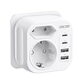 - 6-in-1 Steckdosenadapter: Dieser Adapter verfügt über 1 Schuko-Steckdose (Max 3600 W, 230 V / 16 A), 1 Euro-Steckdosen, 2 USB-Anschlüsse (5 V / 2,4 A pro Anschluss) sowie 2 Typ-C-Anschlüsse (5 V/ 3 A pro Anschluss) mit einer Gesamt-USB-Leistung von 5 V / 3,4 A; die USB-Eingangsspannung beträgt 100 V - 230 V AC bei 0,4 A