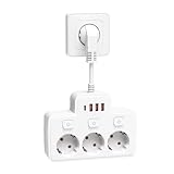 - Mehrfachstecker mit USB: 3 fach Steckdose mit 3 USB Anschluss (5V2,4A Max). Sie können 6 Geräte gleichzeitig aufladen. Wie z.B. Smartphones, Tablet, Küchengeräte etc.