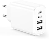- 【 USB Ladegerät mit 4-Ports】 Dieser fantastische USB C Ladegerät verfügt über 2 USB-A- und 2 Type C-Schnittstellen, die mit fast allen usb c adapter kompatibel sind. Der USB-C-Anschluss bietet eine unglaubliche Ladegeschwindigkeit von 20W, während der USB-A-Anschluss eine Ausgangsleistung von 3A/5V bietet. Das großartige Design von 4-Ports ermöglicht es Ihnen, 4-Geräte gleichzeitig stabil aufzuladen und automatisch verschiedene Geräte zu identifizieren, um eine optimale Ladung zu erreichen und wirklich Zeit zu sparen!