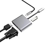 - 【4-in-1-USB-Hub】 Der 4-in-1-USB-Hub ist eine intelligente Dockingstation, alle vier Anschlüsse können gleichzeitig arbeiten (Inhaltsanschlüsse: Typ-C * 1, HDMI * 1, VGA * 1, USB 3.0 * 1), was es Laptops, Handys und MacBooks ermöglicht, die Beschränkungen der Anzahl der Anschlüsse zu beseitigen, löst das Problem von MacBook / Laptops mit begrenzten Anschlüssen. Es ist ein unverzichtbares kleines Ding für Ihre Arbeit, Arbeit, Reisen und Spaß.