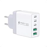 - 【50W USB C Ladegerät】Das 5 in 1 USB Ladegerät verfügt über zwei USB-C-Anschlüsse mit PD20W-Ladegeschwindigkeiten und drei USB-A-Anschlüsse mit 3,1A/5V-Ladegeschwindigkeiten. Ladegerät ist kompatibel mit Power Delivery und Quick Charge 3.0, und das USB C Ladegerät kann ein Mobiltelefon in 30 Minuten von 15 % auf 60 % aufladen.