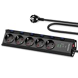 - 5 fach Steckdosenleiste mit erhöhtem Berührungsschutz: 5 Schutzkontakt Steckdosen schützen vor unbeabsichtigten Berührungen z.B. von neugierigen Kinderhänden oder Krallen von Haustieren