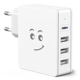 - 4 Port USB Ladegerät: 1 Port 20W USB C Power Delivery zum schnellen Laden der meisten Mobilgeräte, 3 Port 5V / 3A(Max 3A) ,Gesamt: 35W, Lädt bis zu 4 Geräte gleichzeitig ,Kompatibel mit fast allen Handys und USB Ladegeräte