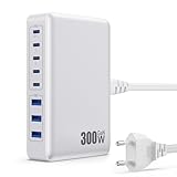 - 【Aktualisiert 300W USB C Ladegerät Mehrfach】Dieses 300W USB Ladegerät verfügt über 5 USB-C- und 3 USB-A-Anschlüsse, um Ihr Mobiltelefon und Ihren Laptop gleichzeitig mit Strom zu versorgen. Sie brauchen keine Adapter mehr, Sie können Ihren Laptop mit dem 100-W-USB-C1-Anschluss aufladen und er ist auch mit PD 65W, PPS 45W, PD 25W/20W Schnellladung kompatibel. Sie können Laptops, Tablets, Smartphones, Smartwatches, Bluetooth-Kopfhörer und andere kleine Geräte.