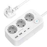 - 3 in 1 UK Adapter: UK Adapter auf EU kann auf 1 Schuko Steckdose (3250W MAX), 1 USB C (12 W MAX) und 1 USB A (12W MAX) erweitert werden. Der Reiseadapter für England kann 3 Geräte gleichzeitig mit Strom versorgen und somit die Wartezeit reduzieren