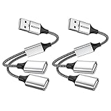 - USB Splitter 1 in 2 Adapter: USB Y Splitter kann einen USB Anschluss Ihres Computers in zwei erweitern. Mit diesem Splitter wird es möglich, zwei Geräte mit einem einzigen Kabel zu verbinden, was Ihnen hilft, sich vom Ärger von zwei verworrenen Kabeln zu verabschieden und Ihren Desktop jederzeit ordentlich und ordentlich zu halten