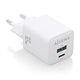AISENS GAN Ladegerät, 30 W, 1 x USB-C PD3.0 QC4.0, 1 x USB-A QC3.0, Weiß