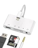 - 【5-in-1-Design】 Dieser Adapter Verteiler für den Lightning Anschluss iPhone/iPad verfügt über 1 SD-Kartenleser-Anschluss + 1 TF-Kartenleser-Anschluss + 1 USB-Kamera-Adapter-Anschluss und 1 Lightning-Ladeanschluss 1 3,5-mm-Kopfhöreranschluss.(Bitte beachten Sie: Dieser 3.5mm iPhone-Adapter-Kopfhörer unterstützt die Anruffunktion nicht.)