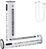 - Sie erhalten: 4 Stück 1200mWh USB 1.5V AAA Akkus Lithium mit hoher Kapazität und 1 Stück USB-Kabel (Stecker nicht enthalten). Bitte beachten Sie: Alle wiederaufladbaren Lithium Batterien unterstützen nicht die Kamera-Serie und Taschenlampen