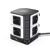 - [Mehrfachsteckdose] Die steckdosenleiste mit 8 AC-Buchsen und 6 USB-Ladeanschlüssen (jeweils 5V/ 2.4A ), ein gutes Ideal für Mobiltelefone, Computer, TV, Leuchten, Heimkino. Es kann mehr Geräte aufladen, bietet Ihnen einen sauberen und ordentlichen Desktop und mehr Platz, ideal für Zu Hause und im Büro.