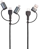 - Vielseitig einsetzbar für PC, Smartphone, iPad u.v.m. • 4 Stecker für Geräte mit USB-A und -C, Micro-USB und 8-PIN für Apple-Geräte • Stecker mit robustem Aluminium-Gehäuse • Hochwertige Textil-Kabelummantelung • USB-C unterstützt schnelles Laden mit 9 Volt und bis zu 3 A