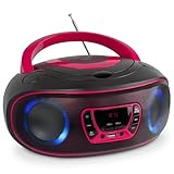- Vorteile: Farbe: Der schwarze/kirschrote CD/MP3 Player spielt neben Audio-CDs auch CD-R und CD-RW mit Repeat/All Funktion ab. Tragbarer USB-Eingang mit Handgriff Digitales UKW-Radio 20 Speicherplätze AUX IN Anschluss Kopfhöreranschluss Großes LCD-Display mit blauer Hintergrundbeleuchtung LED-Beleuchtung Disco-Beleuchtung Teleskopantenne Supersound dank hochwertiger Lautsprecher Ausgangsleistung 2x2W RMS Netz- oder Batteriebetrieb DC 12V, 4x "C"