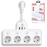 - 7-in-1 Mehrfachsteckdose: Diese 3-fach Steckdosenleiste Ecke mit 4 USB-Anschlüsse (2x USB-A und 2x USB-C). Der USB-A-Ausgang liefert 5V-2,4A und der USB-C-Ausgang 5V-3A. Ideal zum Aufladen von Smartphones, Tablets oder Küchengeräten – alles, was du brauchst, ist in Reichweite