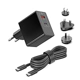 - Technische Spezifikationen: Eingang(Input Volt Range): 100-240V ~ 50/60Hz 1.5A Max. Ausgang(Output ): 20V 3.25A 65W , 15V 3A 45W, 12V 3A 36W, 9V 3A 27W, 5V 3A 15W 65W Max. USB-C port + 5V 2,4A 12W USB A port; USB-C-auf-USB-C-Kabel, schwarz, aus geflochtenem Nylon, verwicklungsfrei, stabil und unzerbrechlich; Unterstützt Schnellladen