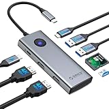 - 【10Gbps USB-A+C für Hochgeschwindigkeitsgeräte】Diese Dockingstation usb c laptop ermöglicht dank ihrer 2xUSB-A-3.2- und 1xUSB-C-3.2-Anschluss eine echte Hochgeschwindigkeits-Datenübertragung mit 10Gbps. Der integrierte SD/TF-3.0-Kartenleser unterstützt Lese-/Schreibgeschwindigkeiten von bis zu 170MB/s und ist damit ideal für Fotografen und Content-Ersteller,um Mediendateien mühelos zu verwalten. Zusätzlich verfügt die docking station für tragbare computer über 3x USB-A-2.0-Anschlüsse–perfekt zum Anschließen von Peripheriegeräten wie Tastaturen, Mäusen oder externen Speichermedien. (Hinweis:Die USB-C-Anschlüsse dienen ausschließlich der Datenübertragung und unterstützen keine Videoausgabe.)
