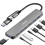 - 【7-in-1 Konnektivitäts-Hub mit Dual-Eingang】Erweitern Sie sofort die Fähigkeiten Ihres Geräts mit diesem SINEHO 7-Port USB-C-Hub. Er verfügt über ein cleveres Dual-Eingangsdesign, das den Anschluss über natives USB-C oder über den mitgelieferten USB-zu-USB-C-Adapter für USB-A-Port-Kompatibilität ermöglicht. Dieser Hub bietet: 1x USB 3.0, 4x USB 2.0 und 2x USB-C Datenports.