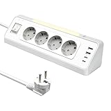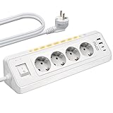- Vielseitige USB-Anschlüsse: Ausgestattet mit 4 USB-Anschlüssen (2A2C), bietet die Steckdosenleiste Ladeoptionen für Smartphones, Tablets und andere USB-Geräte, ideal für den täglichen Gebrauch