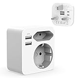 - Erfüllt Verschiedene Bedürfnisse : Ausgestattet mit zwei Wechselstromsteckern: 1 Schuko- und 1 Eurostecker, zwei USB-Anschlüssen (2,4 A, 5 V Max), die vier Geräte gleichzeitig aufladen können. Die maximale Leistung dieses Adapters beträgt 3000 W, sodass er Ihren Ladebedarf auf Geschäftsreisen oder internationalen Reisen problemlos decken und Smartphones, Rasierer, Tablets, elektrische Zahnbürsten, Kameras und andere Geräte aufladen kann.