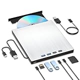 - 【Schnell Verbunden, Sofort Einsatzbereit】Das externes CD Laufwerk für Laptop wird über den USB-Anschluss mit Strom versorgt. Kein zusätzliches Netzteil erforderlich. Schließen Sie das CD Laufwerk extern einfach an Ihren Computer an, und es wird erkannt. Sie können Dateien brennen, Software installieren und Sicherungs-CDs erstellen. Mit diesem DVD Laufwerk extern USB können Sie DVD-/CD-Filme sofort ansehen und Musik und Filme auf Disc brennen.