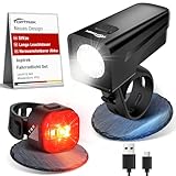 - 【Lange Akkulaufzeit】Das Fahrradlampe Vorne leuchtet im Alltagsmodus (30 Lux) bis zu 11 Stunden, im Hochleistungsmodus (50 Lux) bis zu 5 Stunden und ist in nur 2,5 Stunden vollständig aufgeladen. Das Rücklicht Fahrrad bietet eine Leuchtdauer von bis zu 13,5 Stunden und lädt in nur 2 Stunden.