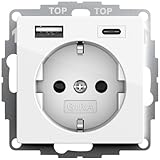 - Multifunktion: Die Gira 245903 vereint eine klassische Schuko‑Steckdose mit zwei USB‑Anschlüssen (USB‑A & USB‑C) – ideal zum gleichzeitigen Laden mehrerer Geräte wie Smartphones oder Tablets.