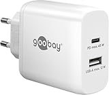 - 45 Watt Schnellladestecker mit 1x USB-C (PD Power Delivery) und 1x USB-A (QC Quick Charge) Buchse zum schnellen Laden von mobilen Geräten wie Smartphone, Tablet und kleinere Laptops