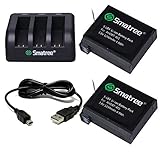 Smatree Ersatzakku (2 Stück), 3-Kanal-Ladegerät mit USB-Kabel für GoPro Hero 4 Kamera Camcorder