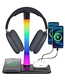 - Wireless Ladegerät & 3 Ladeanschlüssen - Stellen Sie Ihr Gerät auf die Ladestation und genießen Sie das Kabelloses Laden. Die Led Headset Halterung mit Wireless Ladegerät verfügt über 2 USB Anschlüsse und 1 Typ-C Anschluss zum Aufladen Ihres Telefons/Tablets oder anderer Geräte. Hinweis: Der Typ-C Anschluss kann nicht zum Laden eines iPhones verwendet werden.