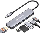 - 6 in 1 USB C Hub - Alles in einem: NOVOO USB C Multiport Hub verwandelt einen USB C Port in 6, einschließlich eines 4K@60Hz HDMI Anschlusses, 2*USB-A 3.0, SD/TF Kartenslots und eines 100W USB C PD Anschlusses.