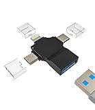 - Kompatibilität mit mehreren Geräten: Dieser 3-in-1-OTG-Adapter verfügt über drei männliche Köpfe: USB C, Lightning und Micro-USB. Es gibt auch eine USB-A-Buchse, mit der Sie problemlos Tastaturen, Mäuse, USB-Sticks, externe Speicher und mehr an iPhone, iPad, kompatibel mit Samsung, MacBook und anderen Android-Geräten anschließen können. (Hinweis: Der Lightning-Anschluss unterstützt nur iOS 13 und höher.)