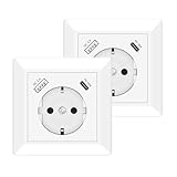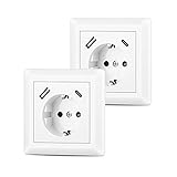 - 【Hohe Sicherheit】: Die Schutzkontakt-Steckdose besteht aus glatter Oberfläche und feuerfestem Kunststoff. USB verfügt über elektronischen Kurzschlussschutz und Überlastschutz