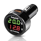 - 3 in 1 Voltmeter Zigarettenanzünder, 3 Funktionen: Aufladen über Dual USB Anschluss /Temperaturmessung/Batteriespannungsmessung.