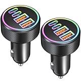 - 【Sicher & Zuverlässig】Mit dem intelligenten Chip im Inneren, das Auto Handy Ladegerät mehrere Schutzfunktionen gegen Überstrom, Überspannung, Überhitzung und Kurzschluss. stoppt automatisch den Ladevorgang, wenn die Leistung voll ist. Das LED-Licht kann Ihnen helfen, den USB-Ladeanschluss schnell zu finden, und das Licht wird langsam die Farben ändern (Blau/Grün/Rot/Orange/Gelb/Violett), was die Atmosphäre im Auto erhöht