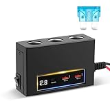 - 【Sicherer Netzschalter mit LED Spannungsanzeige】Entworfen mit Ein/Aus-Schalter für jeden Zigarettenanzünder. Reduzieren Sie das Einsetzen oder Herausziehen von Geräten und verlängern Sie die Lebensdauer des Geräts. Und der Hauptschalter steuert alle Steckdosen und USB-Anschlüsse. Sie müssen sich keine Gedanken über das Entladen der Autobatterie machen. Auch mit dem LED-Voltmeter zur Überwachung Ihrer Autobatterie, Wenn die Spannung unter 10,5 V liegt, wird eine Warnung mit blinkender Nummer auf.