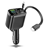 - 4-in-1 Zigarettenanzünder USB C mit einziehbarem Kabel: Dieses Kfz Ladegerät ist mit einem USB-C- und USB-A-Anschluss, einem 80 cm (31,5 Zoll) einziehbarem Type-C-Kabel sowie einem Smartphone-Ladekabel für iPhone ausgestattet – der USB-C-Anschluss unterstützt Schnellladung und stellt sicher, dass Ihre Geräte schnell aufgeladen werden. Das einziehbare Design des Kabels ermöglicht eine ordentliche Aufbewahrung bei Nichtgebrauch und vermeidet Kabelknoten. Beim Gebrauch lässt es sich einfach herausziehen und verlängern; zum Zurückziehen reicht ein einfaches Ziehen und Loslassen – so ergibt sich ein unkompliziertes Ladenerlebnis.