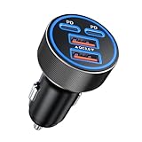 - Schnellladen Auto Ladegerät: Die 2 USB-C-Anschlüsse dieses KFZ-Ladegeräts liefern jeweils eine hohe Leistung von bis zu 45W und ermöglichen so ultraschnelles Aufladen für PD-Schnelllade-fähige Smartphones, Tablets und andere Geräte, wodurch die Wartezeit spürbar verkürzt wird. Auch die 2 USB-A-Anschlüsse mit jeweils 18W sind äußerst leistungsfähig und laden kompatible Geräte deutlich schneller als herkömmliche Auto-Ladegeräte. Selbst bei gleichzeitiger Nutzung aller 4 Ports bleibt die Stromversorgung stabil und effizient.